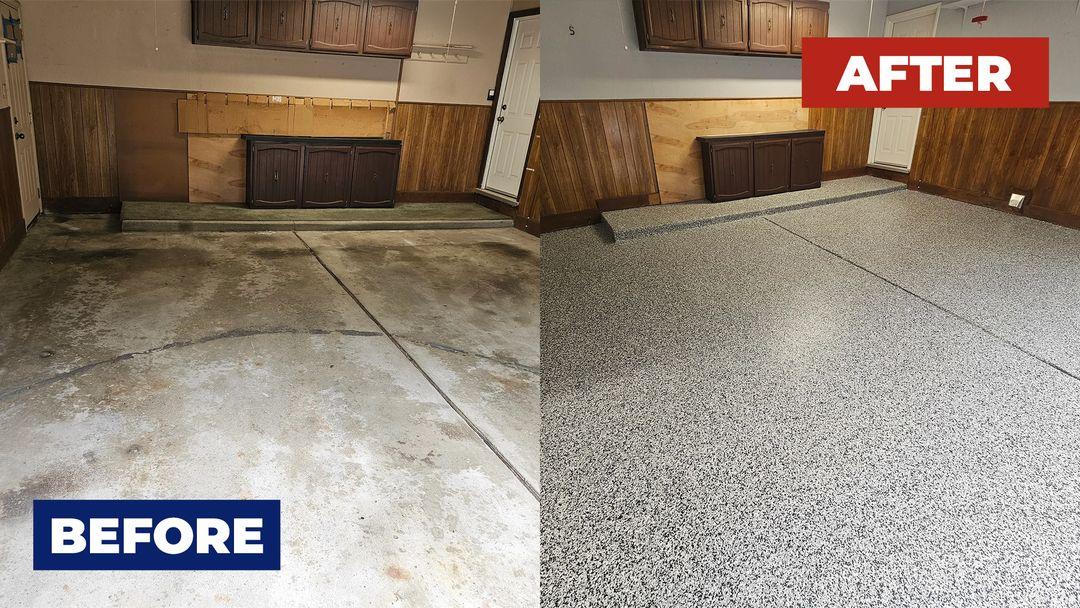 "Amazing transformation. Old, stained and cracked garage floor is better than new. Installation crew was professional and courteous. We are thrilled!"